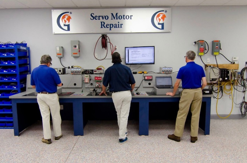 Global Electronic Services offers comprehensive repair and maintenance on today’s most advanced servo motors. Through our computerized repair procedures and OEM trained servo technicians, we can diagnose, repair, maintenance and re-align your servo motors. We follow a step-by-step process for all of our servo motor repairs, which is as follows: 1.Visual Inspection 2.Rotate shaft and meg the motor 3.Check alignment and feedback with Mitchell Electronics testing system 4.Perform KE test, to check function of feedback: resolver angles, encoder count and tach voltages 5.Servo motor is disassembled, cleaned and baked 6.Perform surge and hipot test 7.Perform any necessary machine work and repairs 8.Installation of new bearings and seals 9.Repaired motor is reassembled, bench tested and aligned 10.Retested with Mitchell Electronics 11.Paint station 12.Quality control checked 13.Shipped Because we are a One Source Solution we also repair encoders, tachometers, and resolvers for all servo motor repairs. Feedback repair is necessary to ensure top performance of your servo motor and drive. Feedback devices are used to send information back to the control for speed, direction of rotation, position, acceleration/ deceleration rate, and the relative position of the rotor to the stator. Tests For Feedback Devices: •Check the pulse stream of all wave forms with an oscilloscope •Check the relationship of the A, A*, B, B* signals with and oscilloscope •Check the Z, Z* signals with an oscilloscope •Line level check all lines to verify that none are missing •Line count with a digital pulse counter •Run at continual count at operating speed check, •Measure the offset from signal A to signal B. •Measure the "on" versus the time "off" of the pulses Reducing downtime and minimizing disruptions to production schedules is essential to any business. When your Servo motor needs repair, there isn’t a more reliable repair vendor than Global Electronic Services. We are known for our commitment to superior customer service and getting our client's facilities back up and running as quickly as possible. When your servo motor goes down, the repair services team from Global Electronic Services is ready to assist you. Call us today for a complete quote or click below to request a quote online or speak with a technician!
